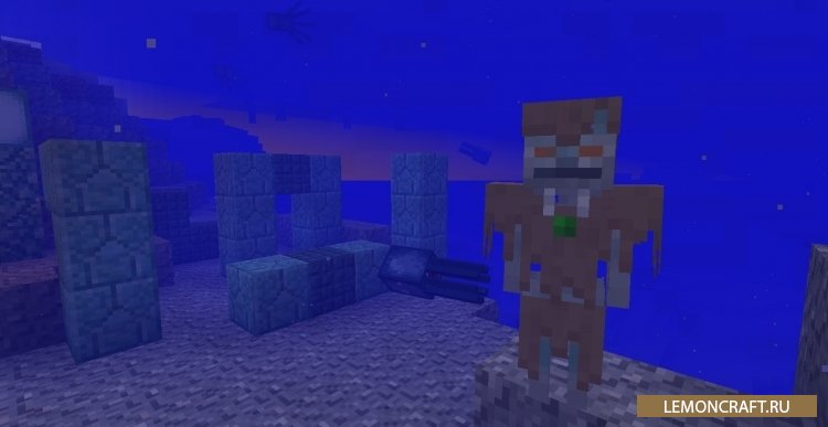 Мод на предметы из призмарина Abyss: Voice добавит в игру предметы и оружие, которые вы сможете обнаружить только в подводном мире. Мод добавит в игру большое количество стандартных блоков и предметов типа кирпича, заборов, лестниц и тому подобное. Кроме этого в игре появятся уникальные предметы, например шип защитника, лук и стрелы из призмарина, мясо осьминога, подводная маска. Так же в игре появятся новые мобы, которые обитают в морских глубинах.